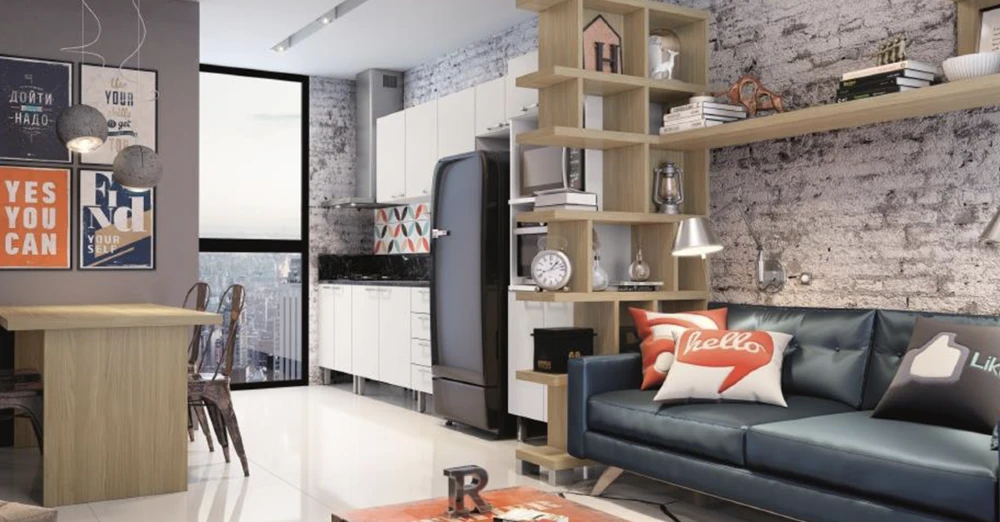 Quem mora em apartamentos pequenos, por exemplo, pode investir em ambientes duplos. Embora isso pareça um desafio, com a ajuda de um divisor, tudo fica mais fácil. Este exemplo de biombo fixo é uma ótima opção: além de cumprir o papel principal, de separar a cozinha da sala, também ajuda a encorpar o decór pelas divisórias que possui. É só você apostar em pequenos objetos, seus livros favoritos e pronto! Você tem um planejado que funciona como estante decorada e divisor de ambientes.