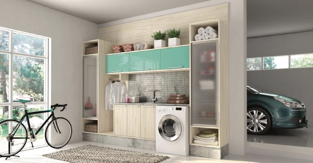 Se tem um lugar da casa difícil de manter em ordem e bonito, com certeza é a área de serviço. Lá fica “toda a bagunça” da casa: produtos de limpeza, roupas para lavar, utensílios para manter a casa limpa. Nessa hora, um planejado pode salvar esse local – principalmente se uma peça muito pequena. Em nossos projetos, você tem tudo que precisa em um único móvel. Armário, estantes, tábua de passar roupa, varal e gaveteiros. A gente sabe que vários decorativos não é o forte nessa parte da casa, mas você deve concordar que um espaço arrumadinho assim também é aliado da decoração! 🙂
