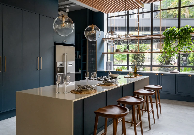 Distribuídas em quartos, living e até a cozinha, as cores, em tons leves ou pastel, podem ser grandes aliadas do bem-estar. Os tons azuis, inspirados no mar ou nas geleiras, podem acalmar. Já os tons de madeira em painéis ou em móveis, por exemplo, podem trazer acolhimento e conforto.
