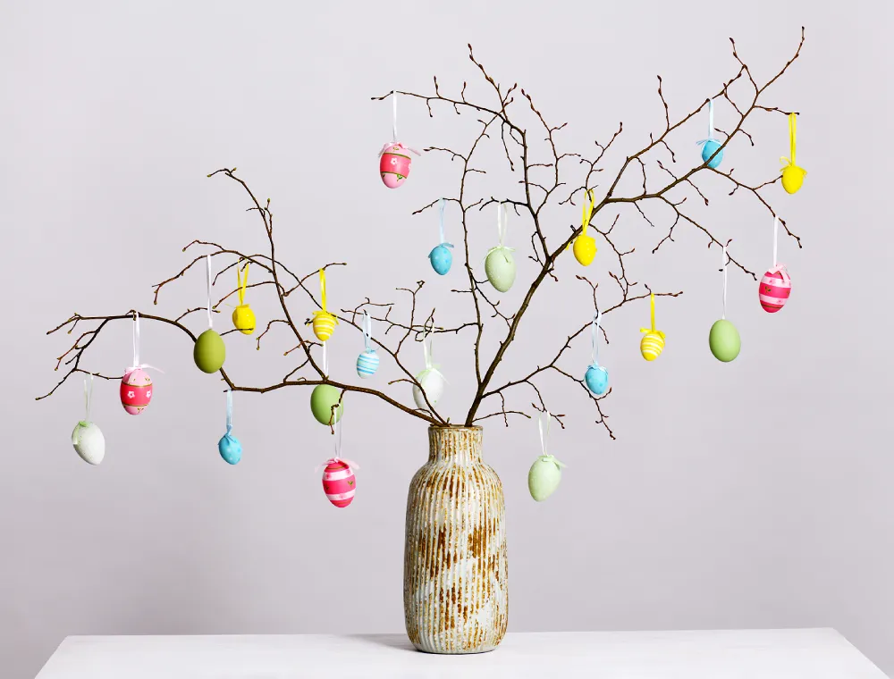 Os ovos podem ser considerados o símbolo mais reconhecido da Páscoa. Eles representam o início da vida e a ressurreição, e na decoração, os ovos de Páscoa são usados de várias formas. Eles podem ser pintados à mão com cores brilhantes ou desenhos complexos e depois colocados em cestas. Você também pode pendurá-los em árvores ou galhos dentro de casa, ou usá-los para criar um centro de mesa atraente.