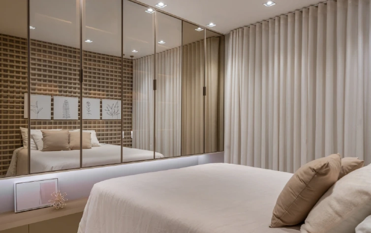 - Espelhos: além de ampliarem visualmente o espaço, os espelhos adicionam um toque de sofisticação e praticidade, permitindo uma visão completa da roupa escolhida.